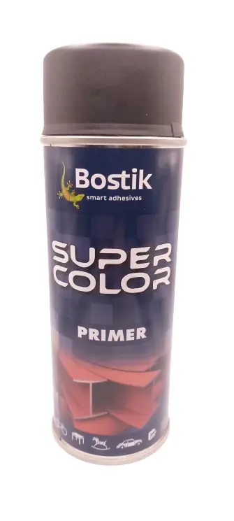 BOSTIK SPRAY SUPER COLOR 400ML PODKŁAD CZARNY Produkt Dekoracyjny : Antykorozyjny lakier podkładowy pod lakiery syntetyczne alkidowe Właściwości : -do wymalowań na zewnątrz i wewnątrz obiektów -krótki czas schnięcia-wysoka odporność na UV i opady -kapturek puszki identyfikuje przybliżony kolor lakieru(służy wyłącznie celom poglądowym) -długi okres przydatności do użycia -bez toluenu Zastosowanie : -antykorozyjne gruntowanie powierzchni stalowych lub metali żelaznych przed nałożeniem alkidowego lakieru nawierzchniowego Dane techniczne : Baza – modyfikowany lakier syntetyczny podkładowy na bazie żywicy alkidowej Pyłosuchość – 5 -10 minut Odporność na dotyk – 15-25 minut Całkowity czas schnięcia powłoki – 24 h*Całkowity czas schnięcia jest silnie zależny od temperatury otoczenia i wilgotności względnej powietrza. Odporność termiczna po utwardzeniu – 20°C do +100°C Wydajność – ok. 2m²