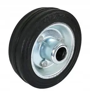 Opis przedmiotu: |||Nazwa: Koło ze standardowej gumy, z piastą z blachy stalowej. |||Ilość sprzedawana: 1 szt. |||Średnica koła: 125 mm |||Szerokość bieżni: 25 mm |||Typ łożyska: wałeczkowe |||Otwór:12 mm |||Długość piasty: 40 mm |||Waga jednostkowa: 0,50 kg |||Nośność: 100 kg