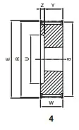 producent SIT wymiary 0 x 55,23 x 45 waga 0,4 kg bo – szerokość paska [mm] 150 (1 1/2″=38,1 mm) cecha bez piasty cecha koło z obrzeżami cecha otwór pod Taper Lock E [mm] 64 liczba zębów [szt.] 14 materiał stal węglowa C45 / 1.0503 / AISI1045 S [mm] 55.23 typ produktu koło pasowe zębate W [mm] 45 współpracuje z Taper Lock 1108 Y [mm] 22 Z – głębokość [mm] 23 wykonanie 4 profil H ds [mm] 0 R [mm] 56.6 U [mm] 37