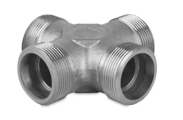 ||| Symbol 104015.1 ||| Rodzaj materiału Stal węglowa ocynkowana ||| Kształt Czwórnik ||| Gwint męski pod rurkę / przewód / port CES M16x1,5 (8S)