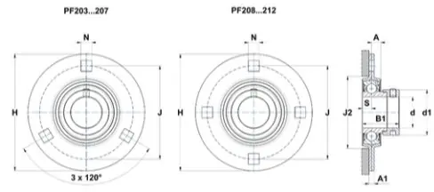 Opis przedmiotu Nazwa: Zespół łożyskowy Ilość sprzedawana: 1szt Rozmiar: ESPF 204 Materiał oprawy: Stal ocynk Typ łożyska: ES Producent: SNRParametry techniczne: A – Wysokość obudowy 7,7 mm A1 – Wysokość stopy obudowy / wysokość kołnierza 4 mm A2 – Całkowita wysokość od powierzchni montażowej 23,4 mm B – Szerokość pierścienia wewnętrznego 21,4 mm B1 – Szerokość całkowita Pierścień wewnętrzny 30,9 mm d – Średnica wału 20 mm d1 – Zewnętrzna średnica mimośrodu. Zamek. kołnierz / nakrętka tulei wciąganej 32,4 mm H – Długość, szerokość lub średnica obudowy 90,5 mm J – Rozstaw otworów montażowych 71,5 mm N – wymiar otworu montażowego 8,7 mm S – Odległość przód/środek łożyska 7,5 mm