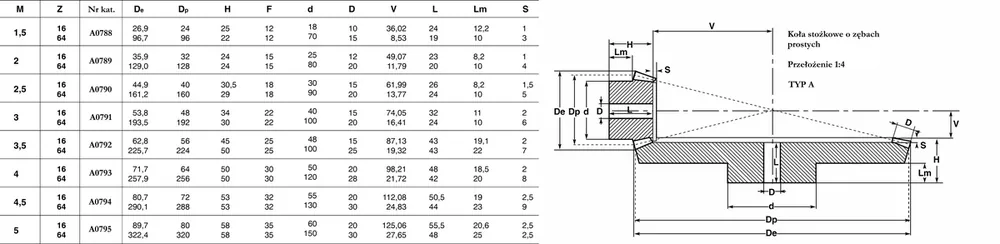 Premium Koło stożkowe Moduł 5 1:4 z=16/64 TYP „A”