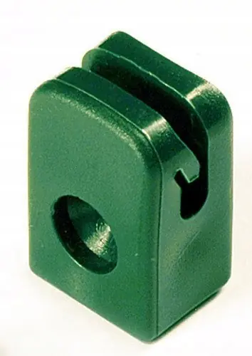 Przelotki do drutu wykonane z HDPE w kolorze zielonym . Stosowane do mocowania drutu przy montażu siatek ogrodzeniowych . Właściwości : -estetyczny wygląd , -mrozoodporna , -odporna na promieniowanie UV . Mocowanie : -wkręt samogwintujący M4,8 x 25 mm . Ilość sprzedawana 10 szt.