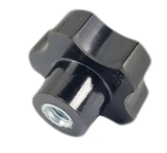 Opis przedmiotu: |||Nazwa: Rękojeści pieciogarbowe |||Rozmiar: M8x14 |||Norma: DIN 56970 DANE TECHNICZNE d1: 40 mm średnica (d):M8 h: 28 mm t: 14 mm p -skok gwintu : 1,25 mm