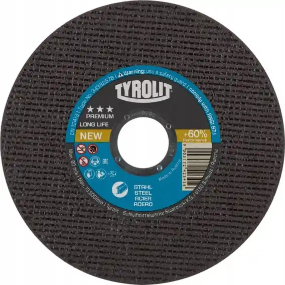 Opis przedmiotu: |||Nazwa: Tarcza do cięcia TYROLIT LONGLIFE |||Ilość sprzedawana: 1szt |||Rozmiar: 125 x 1,0 x 22,23 Ściernice do cięcia PREMIUM*** Super cienkie ściernice LONGLIFE do stali Ściernice do cięcia TYROLIT PREMIUM*** nowej generacji zapewniają większą wydajność w stosunku do innych ściernic PREMIUM przy znacznym ograniczeniu zużycia narzędzia. Super cienkie ściernice do cięcia o grubości od 1,0 do 1,6 mm nadają się do wszystkich rodzajów stali i zapewniają wyjątkowe rezultaty.Oprócz znacznego zwiększenia wydajności, te ściernice do cięcia dzięki ograniczeniu ilości odpadów są przyjazne dla środowiska.