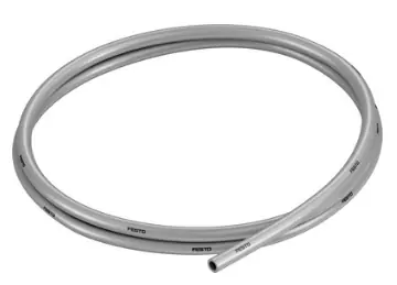 Średnica zewnętrzna 8 mm Przepływ powiązany z promieniem gięcia 37 mm Średnica wewnętrzna 5.7 mm Min. promień gięcia 24 mm Właściwości przewodów pneumatycznych Odpowiedni do zastosowań w prowadnicach kabli przy dużej liczbie cykli Warunki testowe przewodów pneumatycznych Odpowiedni do prowadnic kabli: > 5 milionów cykli wg FN 942021 Ciśnienie robocze w zależności od temperatury -0.95 … 10 bar Dopuszczenie TÜV Medium robocze Sprężone powietrze wg ISO8573-1:2010 [7:-:-] Próba ogniowa materiału UL94 HB Temperatura otoczenia -35 … 60 °C Ciężar produktu w zależności od długości 0.0302 kg/m Przyłącza pneumatyczne do złączy wtykowych, średnica zew. 8 mm dla złączek z nakrętką kołpakową – średnica wew. 6 mm dla złączek nasadkowych – średnica wew. 6 mm Kolor Srebrny Twardość wg Shore’a D 52 +/-3 Uwaga dotycząca materiałów Nie zawierają miedzi i PTFE Zgodne z RoHS Materiał przewodu TPE-U(PU)
