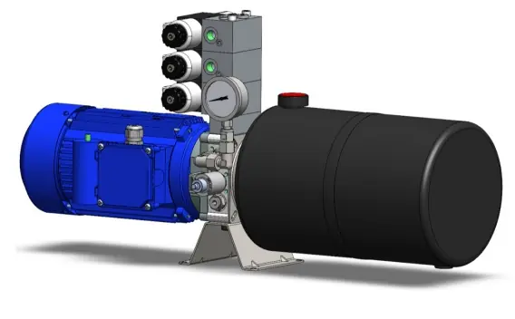 ||| Podatek VAT 23,00% ||| Waga 43kg ||| Waga netto 25kg ||| Kod EAN 2010001669494 ||| Symbol MH-1,5-1F-H2,2-12S-N3R1-24D ||| Moc [kW] 1,5 ||| Maksymalne ciśnienie [bar] 250 ||| Wydajność [L/min] 2,9 ||| Pojemność zbiornika oleju [L] 12 Parametry techniczne: Parametry: Silnik – 1,5kW 1f 230VAC 50Hz Wydajność pompy – ~3L/min Ciśnienie robocze – ~250bar Zbiornik oleju – stalowy 12L Montaż zasilacza – poziomy Medium – olej hydrauliczny HL/HLP 32, 46 cSt Zainstalowany osprzęt elektrohydrauliczny: nabojowy elektrozawór odciążający / upustowy – NO (normalnie otwarty P->T) z cewką 24VDC 3xsekcja sterowania z rozdzielaczem elektrycznym DHL-0711-X24DC + wtyczki LED