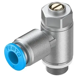 Funkcja zaworuDławienie na wlocie-funkcja zaworu zwrotnegoPrzyłącze pneumatyczne 1QS-6Przyłącze pneumatyczne 2G1/8Element regulacyjnyWkręt z rowkiemSposób montażuPrzy pomocy gwintówNormalny przepływ nominalny w kierunku dławienia185 l/minNormalny przepływ nominalny w kierunku niedławionym160 … 240 l/minTemperatura otoczenia-10 … 60 °CKlasyfikacja morskapatrz certyfikatPozycja zabudowyDowolnaCiśnienie robocze dla pełnego zakresu temperatury0.2 … 10 barStandard flow rate in flow control direction 0.6->0 MPa (6->0 bar, 87->0 psi)340 l/minStandard flow rate in non-return direction at 0.6->0 MPa (6->0 bar, 87->0 psi)390 … 460 l/minMedium roboczeSprężone powietrze wg ISO8573-1:2010 [7:4:4]Uwagi odnośnie medium roboczegoMożliwa praca na powietrzu olejonym (po rozpoczęciu olejenia jest ono wymagane przy dalszej pracy)Temperatura medium-10 … 60 °CNominalny moment dokręcający3 NmTolerancja dla nominalnego momentu dokręcenia± 10 %Waga produktu22 gMateriał pokrywki z gwintemStop aluminiumUwaga dotycząca materiałówZgodne z RoHSMateriał uszczelnieńNBRMateriał pierścienia zwalniającegoPOMMateriał śruby regulacyjnejMosiądzMateriał przyłącza obrotwegoOdlew ciśnieniowy cynkowy Chromowany