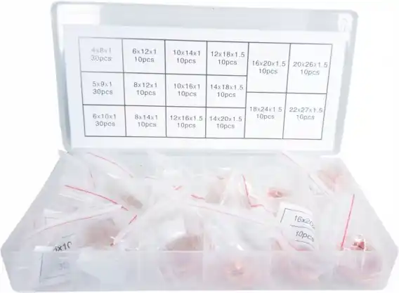 Opis przedmiotu: |||Nazwa: Zestaw podkładek miedzianych |||Ilość sprzedawana: 1 kpl. (220 szt.) |||Materiał: miedź